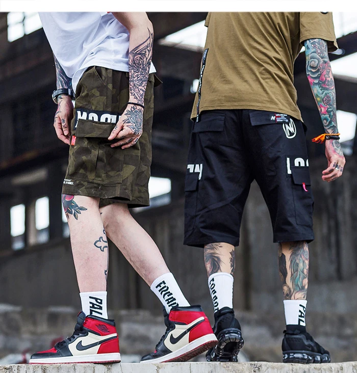 Aelfric Eden Cargo Shorts Men Hip Hop Summer Streetwear Letter Print Camouflage Print 2019 New Fashion Knee Length Short Joggers - nevaehshalo